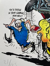 Okay, I wasn't going to sell this, but there's hot rod bills to pay - a one-color silkscreen print, published by Copro/Nason in 1996, signed by ED 'BIG DADDY" ROTH, and hand-watercolored and signed by COOP.